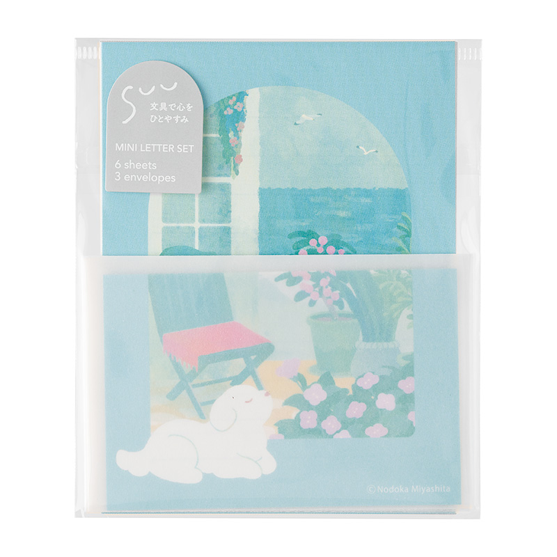 手のひらサイズのミニレターです。封筒にはトレーシングペーパーを使用し、便箋を入れると絵柄がほんのり透けて見えます。ギフトにひとことを添えるときや、日常のちょっとしたやりとりに便利です。