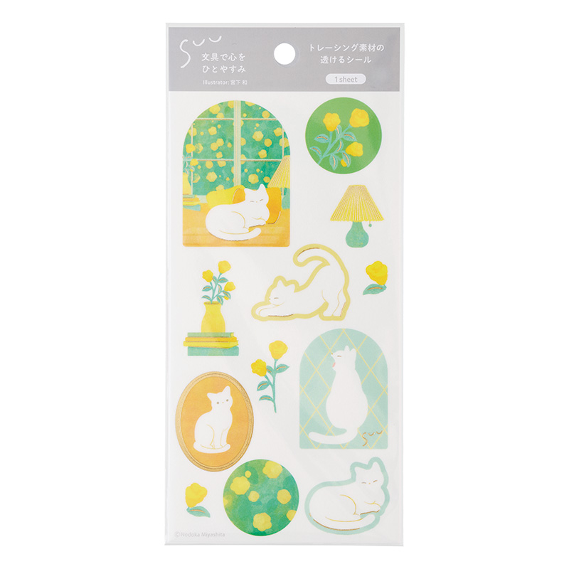 ほんのり透ける半透明のシールです。イラストに描かれているモチーフを切り取ったデザインです。手紙の封緘のほか、手帳やノートのデコレーションにおすすめです。