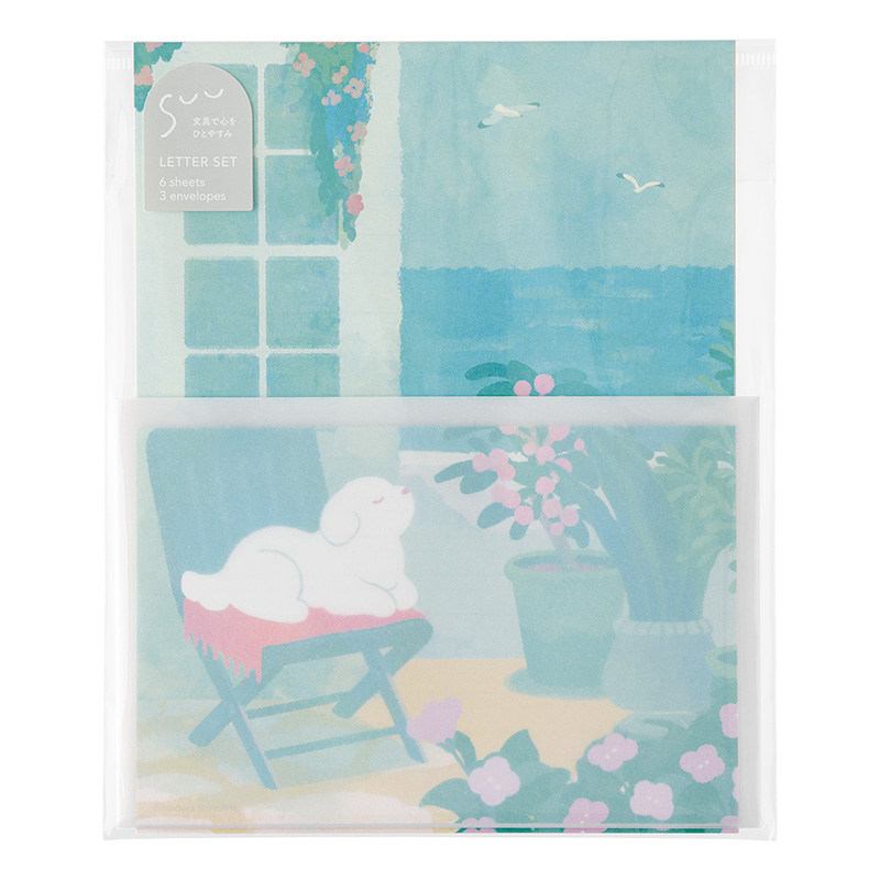 価格:550円(税込)/種類:2種(海風と犬・窓辺の猫)/製品寸法:[便箋]W138×H182mm、[封筒]W148×H98mm/素材:[封筒]トレーシングペーパー/内容:便箋6枚、封筒3枚、宛名シール3枚