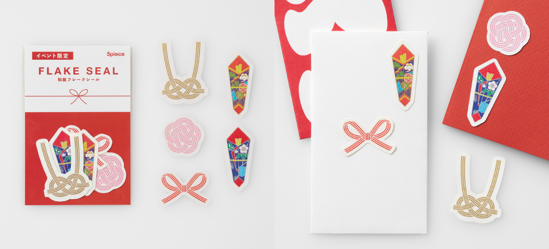 シールのデザインは、水引や熨斗(のし)など、マルアイらしい和モチーフ