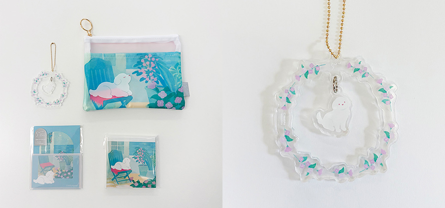 | サイズ | 製品 ・ポーチ:約W175 × H130 × D10mm(金具部分含まず) ・ミニレター:(便箋)W83 × H110mm、(封筒)W90 × H60mm ・メモパッド:W85 × H85mm ・アクリルキーホルダー:W70 × H70 × D3mm以内 パッケージ:約W205 × H165 × D20mm |